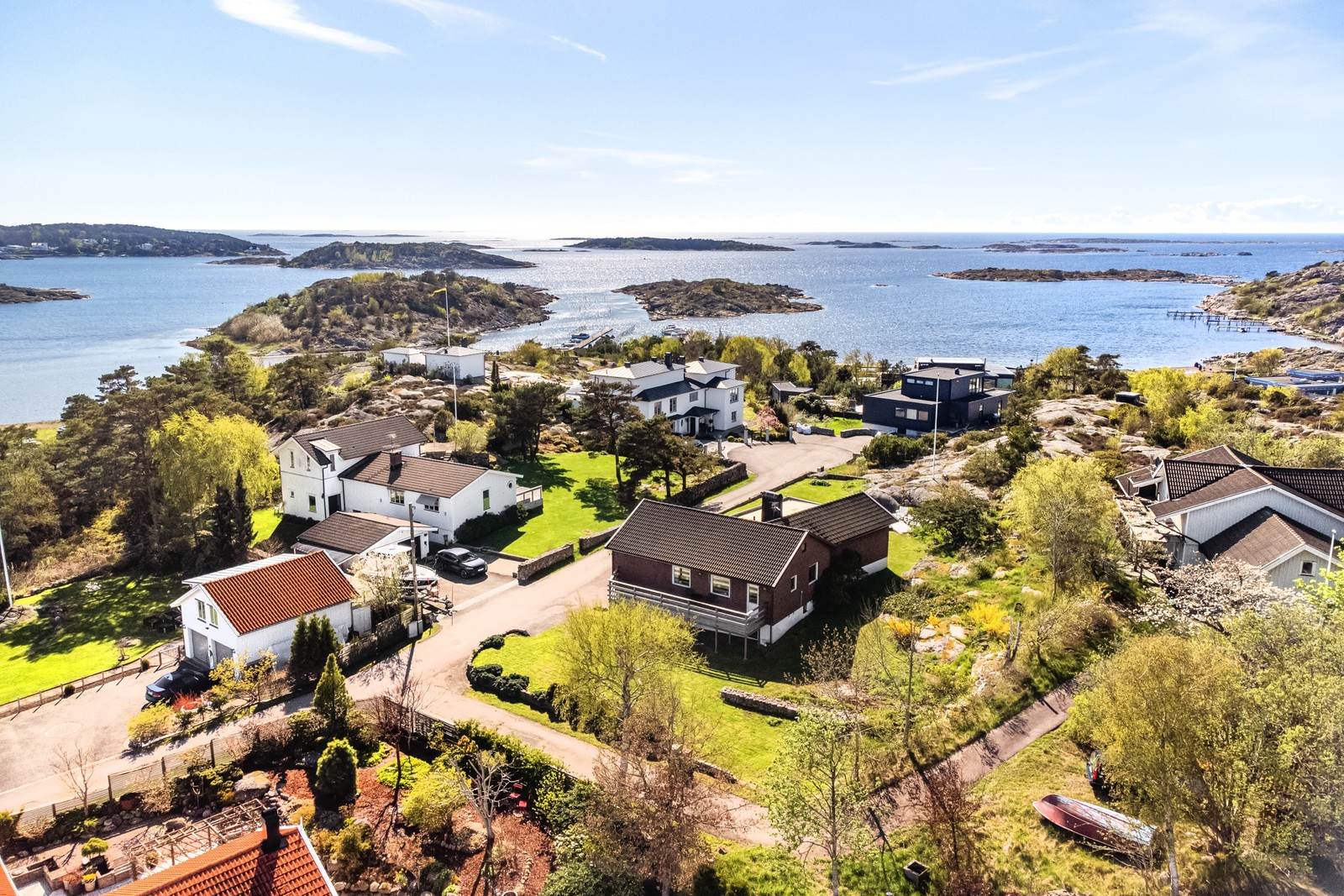 På en högt och idylliskt belägen återvändsgata finner du denna charmiga villa, uppbyggd på en lättskött trädgårdstomt. Låt blicken vila över klippor och hav, och se solen gå ner i horisonten. Med trädgård, uteplats och uterum placerat i syd- respektive västerläge har du värmande solljus hela dagen till sent på kvällen. Tomten ramas in av ett karaktäristiskt stengärde som även återspeglas vid uterummets kortsida.
