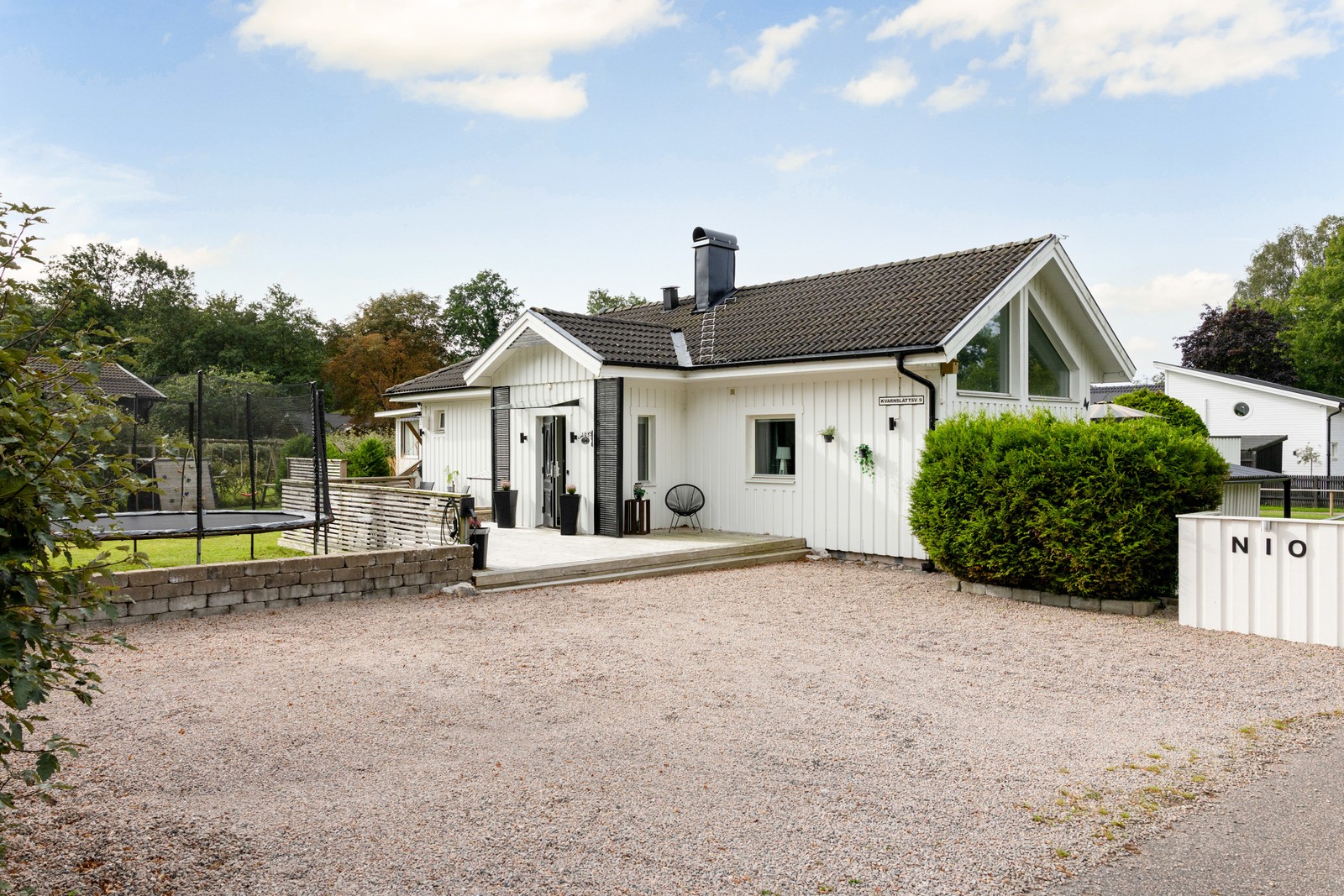 Trevlig och välvårdad enplansvilla med tre sovrum, uterum och flera härliga uteplatser. Belägen i ett lugnt och barnvänligt område i populära Vallda.