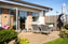 I sällskapsrummet finns både plats för matbord och soffgrupp med utsikt mot trädgården.