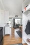 På andra våningen finns en fullstor kyl och frys i ett. På golvet ligger en fin parkett och väggarna är målade i vitt.
