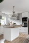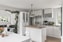 Vitvaror i rostfritt från Gorenje; inbyggnadsugn, inbyggnadsmicro, induktionshäll, fläkt samt kyl och frys i fullhöjd. Inbyggd diskmaskin från Siemens.