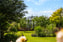 Den gröna trädgården ramas in av planteringar och blommande rabatter som ger liv hela sommaren. Här finns fruktträd, ett växthus, en liten damm och flera uteplatser som fångar både sol och skugga under dagens lopp. I bakkanten av förrådet har familjen under många år bedrivit butiken Grå Porten, som sålt keramik – en plats som lika gärna kan bli ateljé, hobbyrum eller ge möjlighet till egen verksamhet.