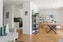 Vid det stora skjutpartiet finns en härlig och ljus matplats. Härifrån nås den generösa terrassen i soligt sydvästläge, som blir en naturlig förlängning av bostaden under årets varmare månader. Vardagsrumsdelen är luftig med gott om plats för soffgrupp.