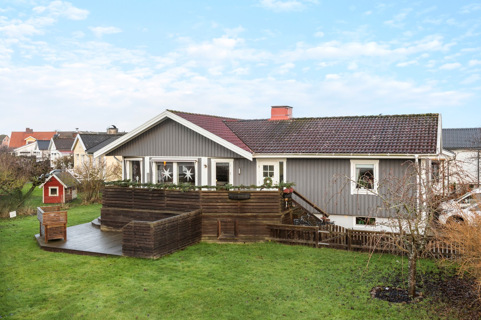 Den rymliga hörntomten ger känslan av att ha lite extra rymd omkring sig. Gräsmattan bjuder in till lek, odling och avkoppling, och på den stora altanen finns plats för både matgrupp, solstolar och grill. En praktisk redskapsbod rymmer trädgårdsredskap, cyklar och annat. På uppfarten finns dessutom plats för två bilar.