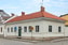 Två rum mot gatan med trägolv, skjutdörr och kakleugn. Här finns plats för sovrum eller allrum.
