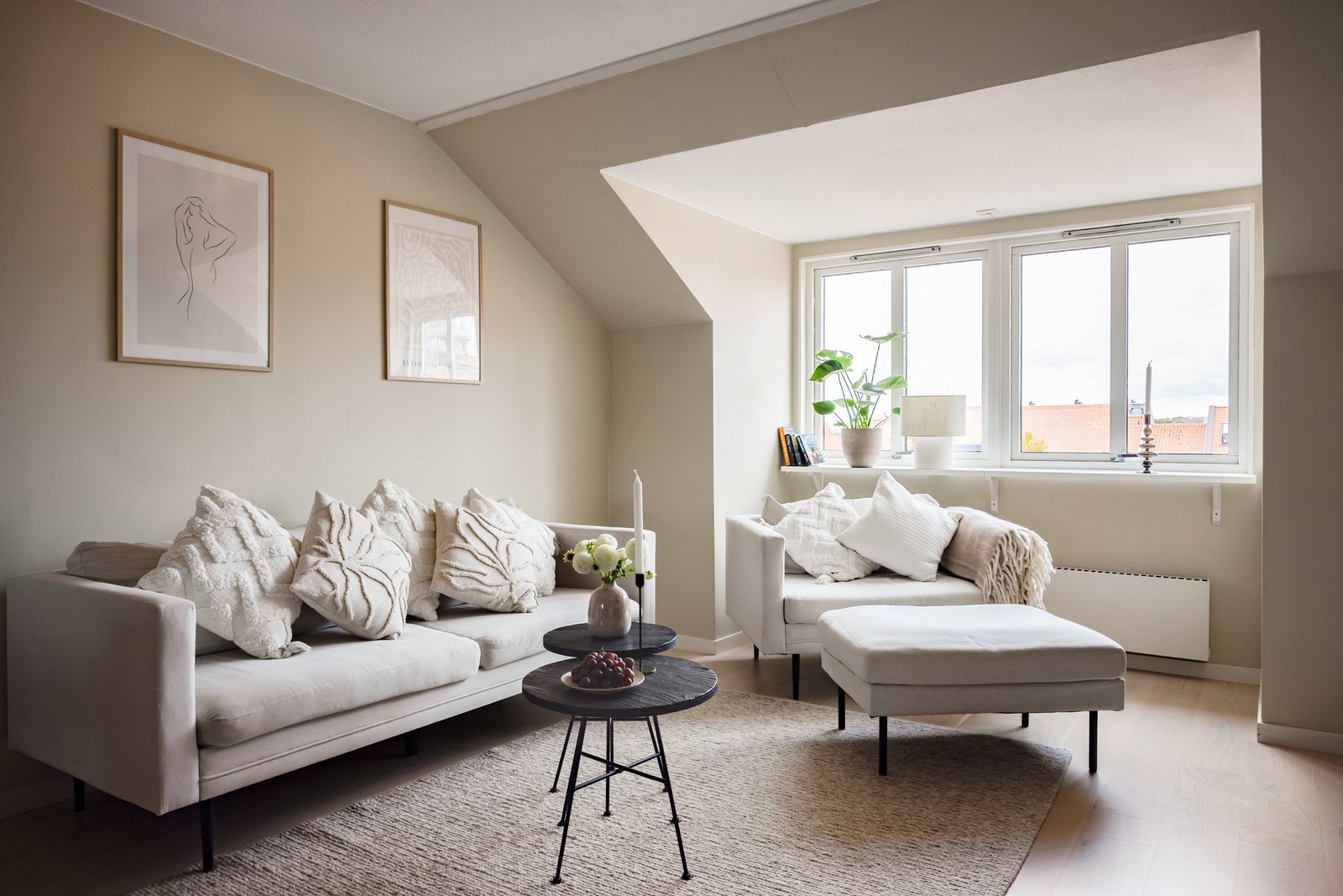 Högst upp i huset, med hiss som bekvämlighet, väntar denna smakfulla tvåa som totalrenoverades 2022. Här möts modern design och genomtänkta materialval. Ljuset från takkuporna och utsikten över stadens takåsar skapar en luftig känsla med tydlig vindskaraktär – mitt i centrum.