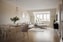 Den öppna planlösningen mellan kök och vardagsrum uppmuntrar till social samvaro och gör matlagningen njutbar. Köket från Vedum har luckor i en varm skogsgrön ton, bänkskiva av laminat med vitt kakel som stänkskydd. Vitvarorna inkluderar induktionshäll, ugn, fläkt, micro, integrerad diskmaskin samt kyl och frys. Vardagsrummet är lättmöblerat med plats för både matbord och soffgrupp.