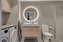 Helkaklat badrum med kommod, dusch, wc och arbetsbänk med tvättmaskin och torktumlare under. Stilfullt med bra förvaring i lådor och skåp.