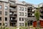 På den gröna innergården finns planteringar, sittgrupper, lekplats och slingrande gångar.