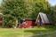 Utanför väntar en grönskande trädgård med stora träd som ger svalkande skugga och en syrenhäck som skyddar mot gatan. Här kan du njuta av frukt från två äppelträd och två plommonträd – ett med gula och ett med lila plommon. För gästerna finns en gäststuga med extra sängplatser, och det gamla utedasset har fått nytt liv som förråd. I dungen gömmer sig till och med en liten trädkoja – en plats där både stora och små kan drömma sig bort.