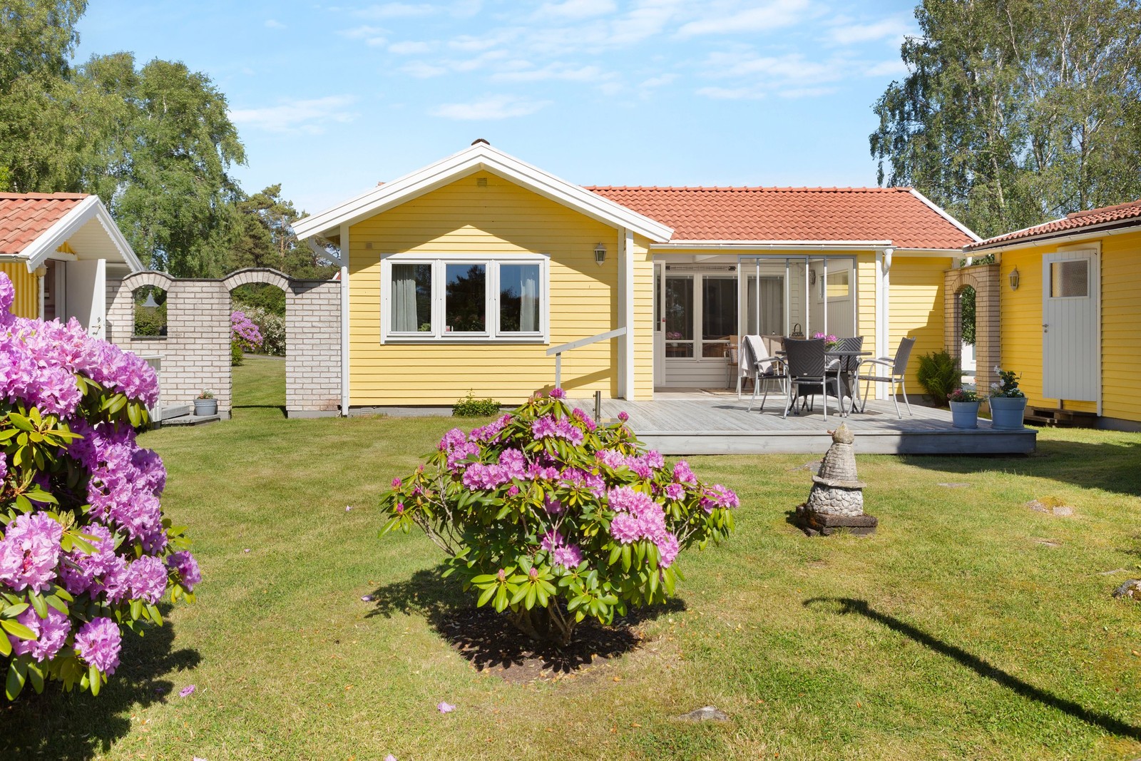 Charmigt fritidshus med gästhus och soliga uteplatser