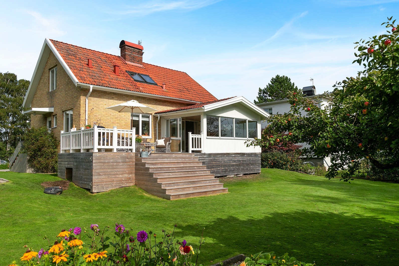 Charmigt 50-talshus på lugn återvändsgata, stor tomt, modern inredning och fantastisk uteplats i västerläge.