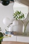 Vardagsrummet är rymligt och lättmöblerat med gott om plats för både soffgrupp och kompletterande möblemang. Härifrån nås uteplatsen och det angränsande uterummet i soligt västerläge, vilket ger ett fint ljusinsläpp och förlänger bostadens sociala ytor.