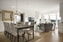 Öppen planlösning med kök och vardagsrum i en fin stor social yta. Parkettgolv och vita väggar. Här ryms soffgrupp och matbord med plats för flera gäster. Stora fönsterpartier och utgång till balkong.