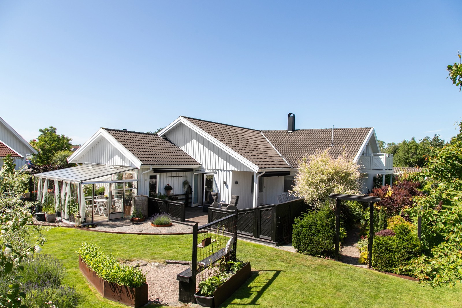 Välkommen till ett hem med modern standard och generösa ytor där trädgården är lika viktig som huset.