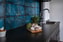 Köket är stilrent utformat i mörkt trä och utrustat med kaklat stänkskydd samt rostfri spis med häll, vilket ger en modern och tidlös känsla. Här finns gott om plats för både matlagning och umgänge.