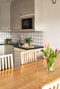 Hela bostaden har vattenburen golvvärme som bidrar till en jämn och behaglig temperatur året runt.