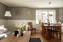 Vardagsrum i öppen planlösning mot köksavdelningen, med plats för matbord för 4–6 personer. Köket är fullt utrustat med kyl/frys, diskmaskin, mikro, spis och fläkt.