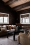 Från hallen kommer du till köket som är rymligt och välutrustat med generösa arbetsytor. Genom pardörrar öppnar köket upp mot det stora allrummet – en naturlig samlingsplats för långa middagar och umgänge efter många timmar ute på fjället. Det är ett omfamnande vardagsrum med generös takhöjd, synliga timmerstockar och en vacker och rejäl öppen spis som sprider värme och sätter karaktär på rummet. Härifrån når du altanen där utsikten över Åredalen och fjällvärlden breder ut sig.