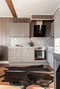 Köket går i grått och är utrustat med vitvaror från Siemens såsom induktionshäll, fläkt, integrerad diskmaskin, inbyggnadsugn samt integrerad kyl/frys. Från kök och vardagsgrum nås rymlig hörnbalkong med fantastiska vyer över Åredalen och Renfjället.