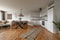 Lägenheten har ett rymligt och socialt vardagsrum som ligger i fil med matplatsen och köket. Det gör det enkelt att servera måltider och umgås med gäster samtidigt som du lagar mat. Det finns tre sovrum i lägenheten, alla med tillräckligt med utrymme för sängar och förvaringsmöbler.