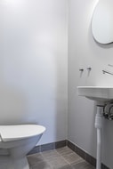 Varje bostad har ett eget skidförråd i anslutning till entrén.