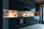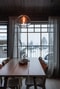 Kök och vardagsrum har en öppen planlösning där matplatsen inrymmer sex personer. Här finns också en vedeldad kamin och en balkong med fjällutsikt i sydväst. Köket är utrustat med kombinerad kyl/frys, induktionshäll, fläkt, ugn, mikro och diskmaskin.