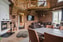 Med sin imponerande arkitektur i form av synligt timmer, entresol och en enastående takhöjd är rummet verkligen husets hjärta. Här finns gott om utrymme för både sittgrupper och ett generöst matbord, vackert placerat framför den stämningsfulla eldstaden där murstocken sträcker sig hela vägen upp till nock och blir ett magnifikt blickfång. Det nyanlagda furugolvet från Föllinge, med sin naturliga lyster och vackra ådring, skapar en varm och genuin känsla som harmonierar perfekt med rummets karaktär och atmosfär.