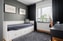 Används idag som kontor men passar utmärkt som sovrum eller gästrum. Parkettgolv, vita väggar och en mörkare fondvägg ger rummet en modern och behaglig karaktär med fint ljusinsläpp.