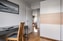Välkomnande hall med parkettgolv, ljusa väggar och en praktisk garderobsvägg med skjutdörrar som ger gott om förvaring och ett stilrent intryck.