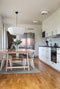 Ljust och välplanerat kök där den matlagningsintresserade trivs. Köket ligger i socialt öppen planlösning med vardagsrum och matplats. Härliga fönstersättningar mot det närliggande skogsområdet bjuder både in naturen och skapar etthärligt ljus till hela lägenheten. Vardagsrumsdel rymmer stor soffa och härifrån finns utgång till balkongen som erbjuder både utsikt och plats för utemöbler och grill. Köket är utrustat med fullstor kyl, fullstor frys, inbyggnadsugn, inbyggnads micro, fläkt, diskmaskin och induktionshäll. Stilrent matchande bänksiva i sten och gott om förvaring i skåp och lådor. Vita väggar och ekparkettgolv.
