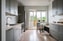 Smakfullt renoverat kök med luckor i modern grå nyans tillsammans med matchande ljus bänkskiva och klassiskt vitt kakel som stänkskydd. Köket är utrustat med induktionshäll, spisfläkt, diskmaskin, varmluftsugn och kombinerad kyl/frys. Från köket når ni den härliga balkongen. Trägolv i ljus nyans och ljusa tapetserade väggar gör köket komplett.
