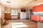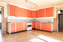 Rymligt lantligt kök med gott om utrymme för matplats. Köket är utrustat med: Inbyggnads ugn, häll, fullstor kyl och fullstor frys. Köket erbjuder gott om förvaring i skåp och lådor och ovan arbetsbänkarna sitter ett kakel som stänkskydd. Väggarna kläs med bröstpanel och tapet och på golvet ligger en plastmatta.