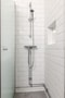 Det fräscha badrummet är helkaklat och utrustat med dusch och tvättmaskin. Lägenheten har dessutom utmärkta förvaringsmöjligheter tack vare en generös klädkammare och tillhörande förråd.