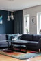 Väl tilltaget vardagsrum med öppen planlösning som integreras med köket, perfekt för sociala tillställningar och avkoppling. Utgång till balkongen som vetter mot härligt grönområde. Parkettgolv och tapet.