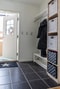Välkomnande och rymlig hall med mörkt klinkergolv och ljust målade väggar som ger ett fräscht intryck. Gott om plats för klädavhängning och möblering. Entré via privat loftgång som även kan nyttjas som en trivsam balkong.