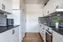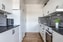 Ljust och härligt kök i stilrena vita och grå nyanser. Här finns gott om både arbetsyta och förvaring samt utrustning som spis med häll och ugn, fläkt, diskmaskin, kyl och frys. Den generösa matplatsen intill fönstret bjuder på fint ljusinsläpp och rymmer ett stort matbord. Rummet har laminatgolv och väggar med tapet och bröstpanel som ger en varm och hemtrevlig känsla - perfekt för trevliga middagar!