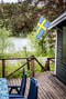 Stugan ligger vackert inbäddad i tallskog, högt belägen med fri sikt över vattnet. Den stora altanen i bästa sydvästläge bjuder in till långa sommarmiddagar och sköna lata dagar. På baksidan av huset finns en skyddad veranda där man gärna slår sig ner med kaffekoppen och låter tystnaden tala.