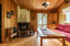 Mysigt sovrum med plats för dubbelsäng och fönster mot naturen – här somnar du till tystnaden och vaknar med ljuset från skogen.