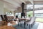 Husets hjärta är det öppna köket och allrummet med imponerande takhöjd på fyra meter och stora fönsterpartier som ger ett fantastiskt ljusinsläpp och sjöutsikt. Det stilrena Ballingslöv-köket är fullutrustat med bl.a köksö, vinkyl och häll med integrerad fläkt allt för att passa den matlagningsintresserade som gärna bjuder in vänner och familj till umgänge. Här finns gott om arbetsytor och förvaring, vilket gör köket både praktiskt och estetiskt tilltalande. Den vedeldade kaminen skapar en varm och inbjudande atmosfär, perfekt för både vardagsmys och middagar med utsikt mot vattnet. Rummet bjuder in till socialt umgänge och blir en naturlig samlingspunkt för familj och vänner, oavsett årstid. En altandörr tillsammans med stort skjutdörrsparti som suddar ut gränsen mellan inne och ute, och knyter elegant ihop vardagsrummet med den generösa altanen - perfekt för sommarens måltider och avkoppling i solen.