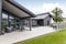 Modern enplansvilla från 2020 där design möter funktion, med stort dubbelgarage intill huset.