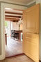 Här bor du i ett hem med värme och bevarade originaldetaljer. Det lantliga köket är varsamt renoverat med känsla för husets arv. Vedspisen har bevarats, samtidigt som moderna funktioner har tillförts för att förenkla vardagen. Materialval som tegel och synliga takbalkar ger rummet en rustik karaktär. Från köket når du en mysig uteplats som bjuder in till långa stunder utomhus.