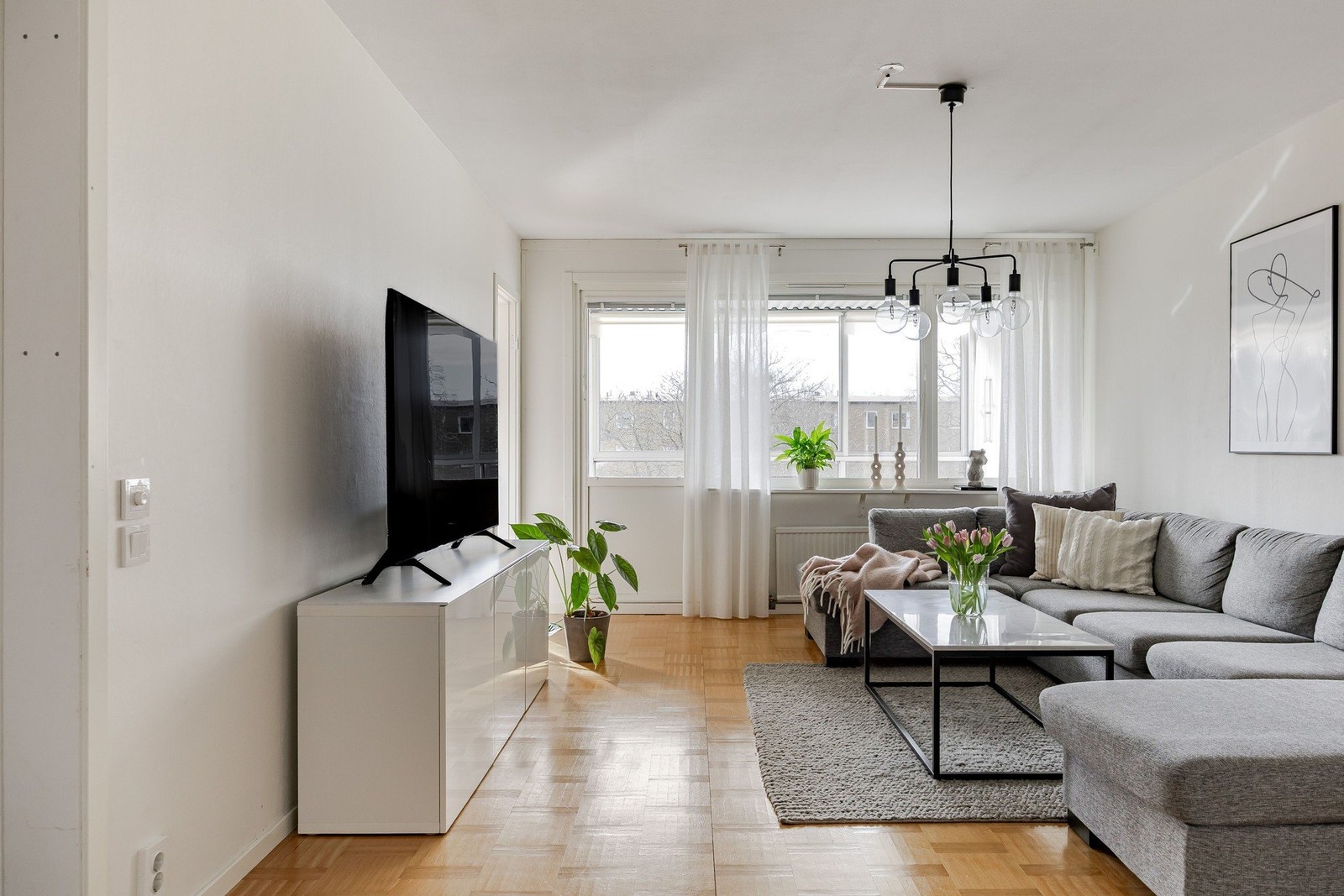 Redan i hallen möts du av en genomgående ljus och enhetlig känsla som löper vidare genom hela hemmet. Planlösningen är väl avvägd med generösa rum och naturliga sällskapsytor. Köket är stilrent och praktiskt utformat med goda arbetsytor och förvaring. Här finns en naturlig matplats intill fönstret som ramar in utsikten och skapar en trivsam plats för såväl vardag som sociala tillfällen. Vidare öppnar hemmet upp mot ett rymligt vardagsrum med stora fönsterpartier som släpper in rikligt med dagsljus. Här finns gott om plats för både soffgrupp och ytterligare möblemang efter behov. Från vardagsrummet nås den inglasade balkongen – ett uppskattat extrarum som förlänger hemmet och erbjuder en rofylld plats att njuta av oavsett årstid.