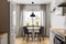 Parkettgolv och ljusa väggar samt mörk fondvägg. Utgång till den inglasade balkongen i härligt solläge.