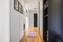Inbjudande och rymlig hall med praktisk klinker på golv som går över till fint parkettgolv och ljusa väggar samt mönstrad fondvägg. Goda förvaringsmöjligheter i garderober.