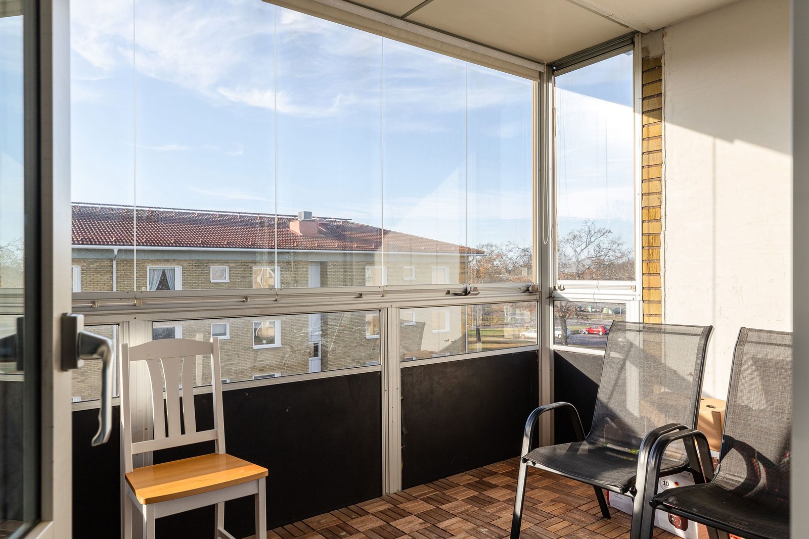 Via vardagsrummet når du den inglasade balkongen i härligt solläge.