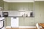 Direkt till vänster om hallen finns köket beläget som går i en stilren grön kulör. Köket är utrustat med spis, fläkt, diskmaskin, kyl och frys. Här finns dessutom plats för större matgrupp, perfekt för att samla familj och vänner.