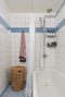 Från hallen finns ingången till badrummet med badkar, wc, handfat, spegelskåp samt tvättmaskin. Golvbeklädnad; Plastmatta. Väggbeklädnad; Kakel.