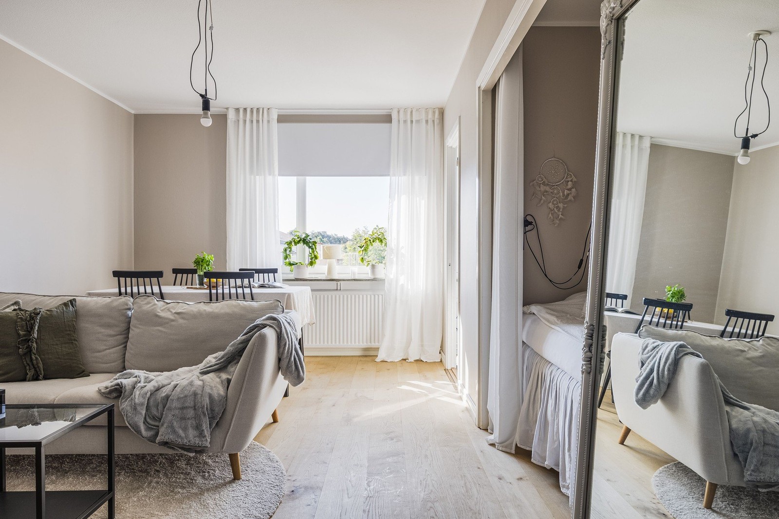 Nu saluförs Jägarevägen 6B, en kvadratsmart 1,5:a trivsamt belägen högst upp i huset. Bostadens 30 kvadratmeter är väldisponerade och här har inget lämnats åt slumpen. Tillsammans med det vackra ljusinsläppet och den smakfulla interiören skapas en inbjudande atmosfär som förgyller lägenhetens hemtrevliga känsla.