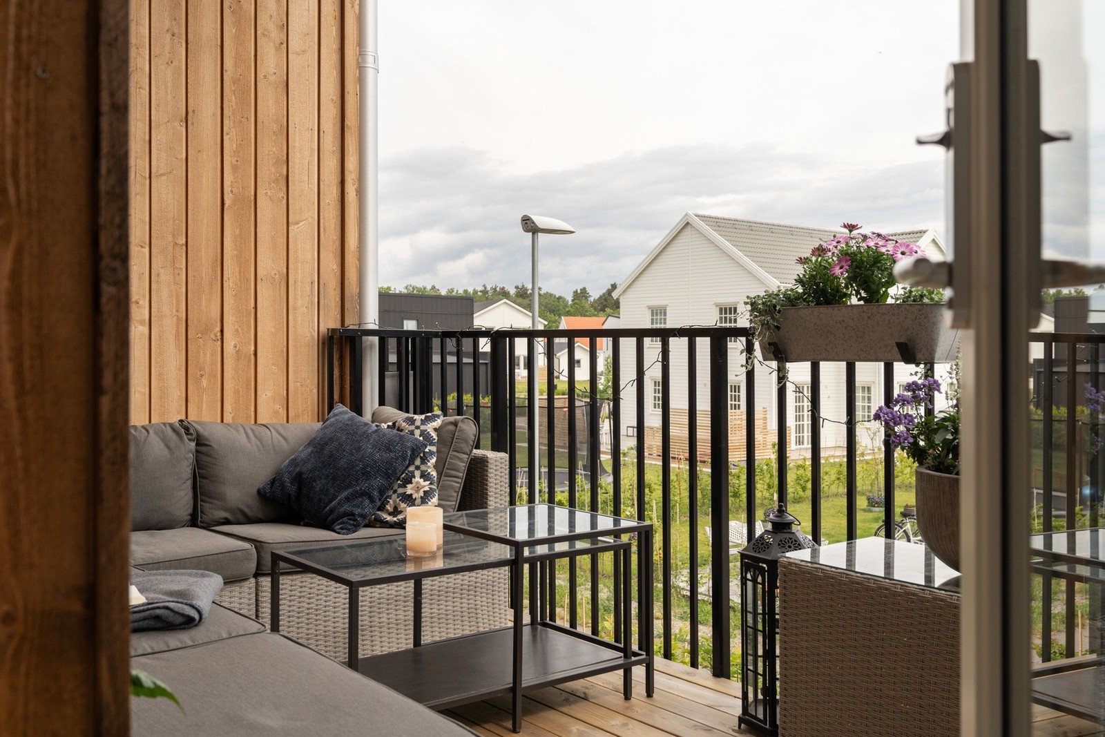 Här möts du av ett nyproducerat och stilrent hem som stod klart hösten 2021. Bostaden är belägen på andra våningen och erbjuder en härlig balkong med plats för generöst utemöblemang – perfekt för avkoppling eller middagar i kvällssolen. Allt är fortfarande i nyskick och inger en känsla av att flytta in i något helt nytt.